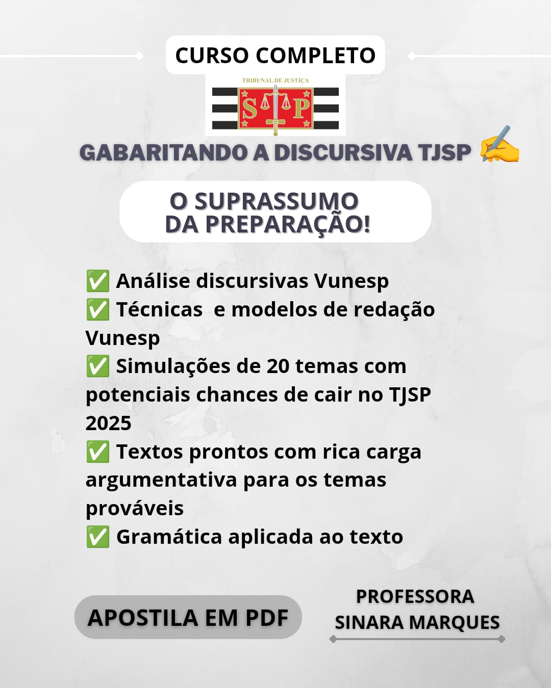 Curso Completo em PDF Gabaritando a Redação TJSP 2025: perfil Vunesp