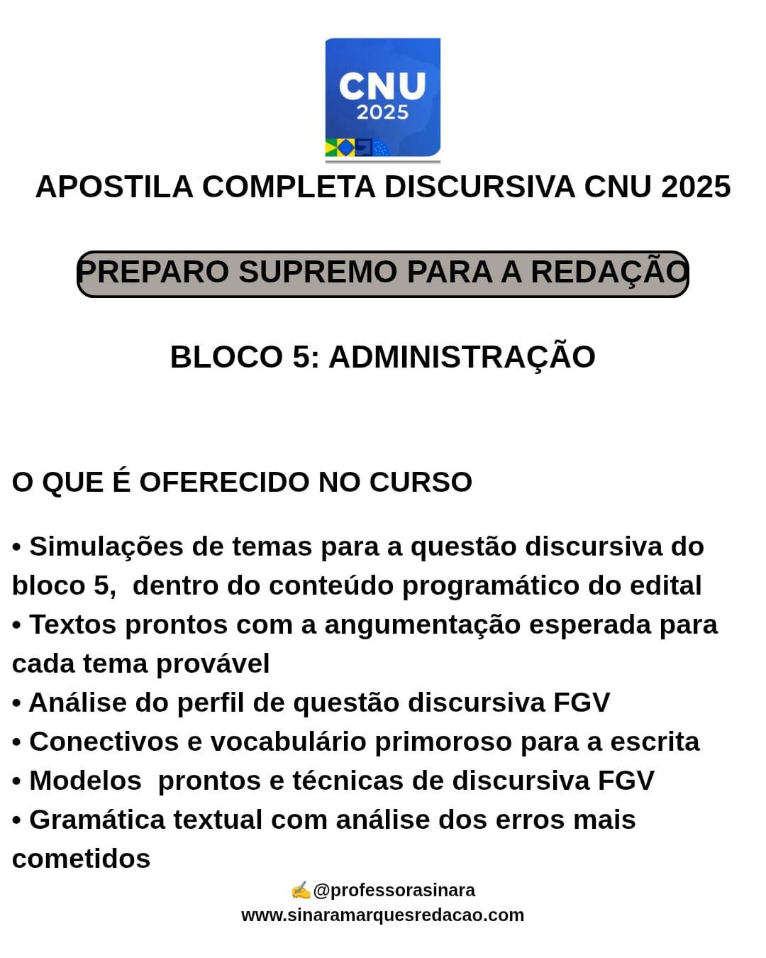 APOSTILA COMPLETA (PDF) DISCURSIVA CNU 2 BLOCO 5 (ADMINISTRAÇÃO)