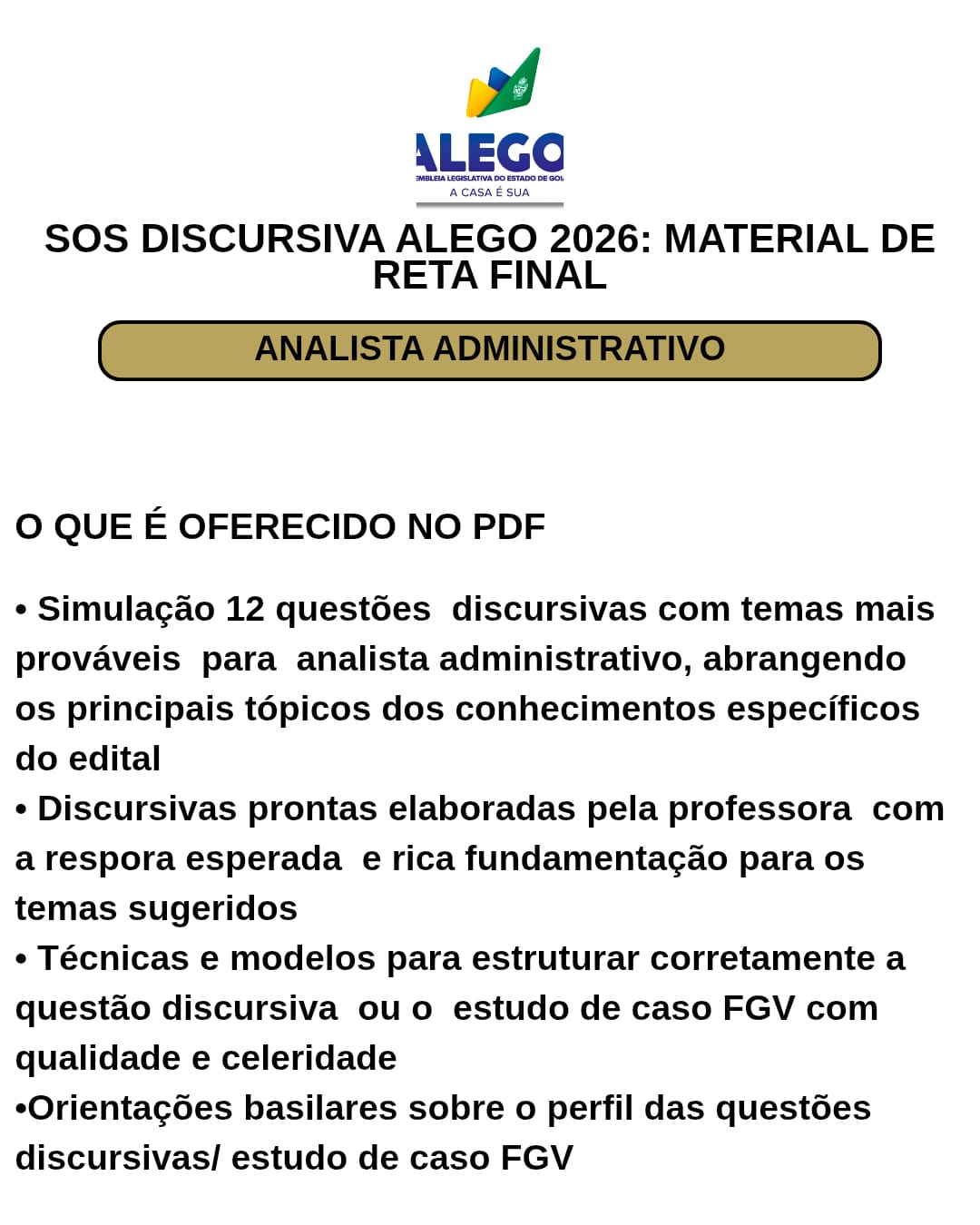 SOS DISCURSIVA ALEGO 2026 ANALISTA ADMINISTRATIVO MATERIAL DE RETA FINAL (PDF)